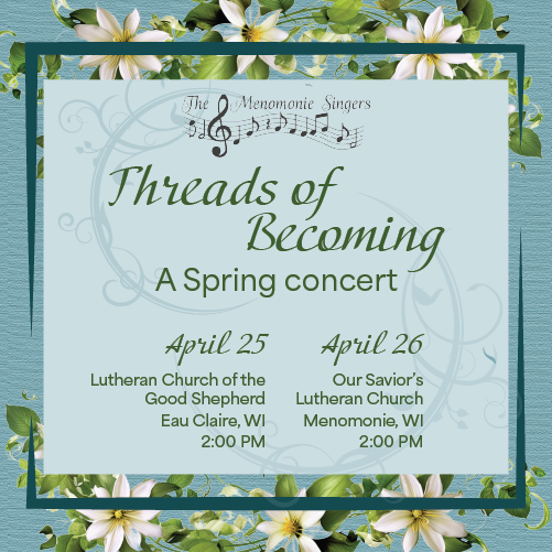 The Menomonie Singers is a non-profit group, and we depend on the support of generous individuals like you to keep sharing music with our community. If you’re interested in sponsoring or supporting our work, we’d love to hear from you!